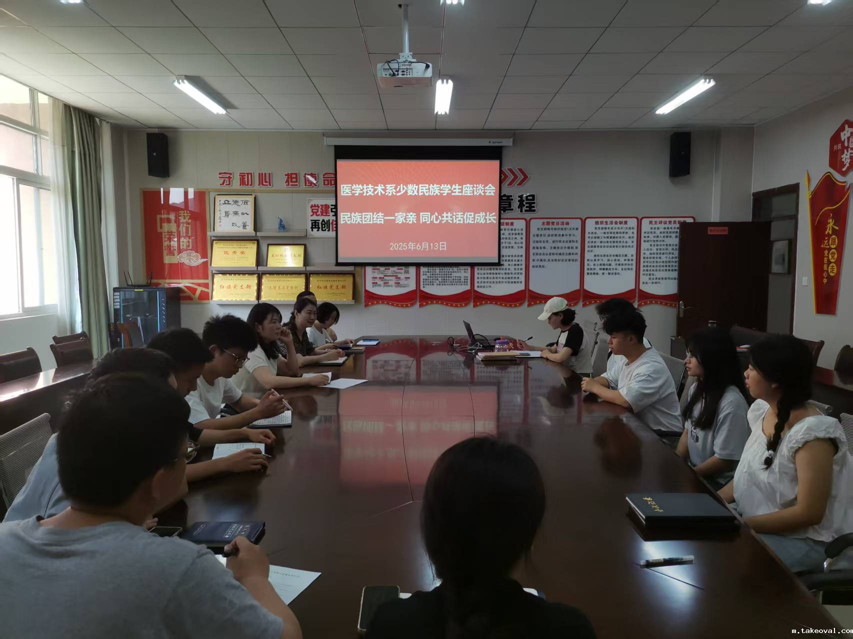 为进一步铸牢中华民族共同体意识,深化医学技术系各民族学生交往交流交融,6月13日,医学技术系召开以“民族团结一家亲,同心共话促成长”为主题的少数民族学生座谈会。医学技术系党总支副书记代晖、系副主任雍国富、系副主任何焱,各科室负责人、辅导员代表以及2024级少数民族学生代表参加此次会议。