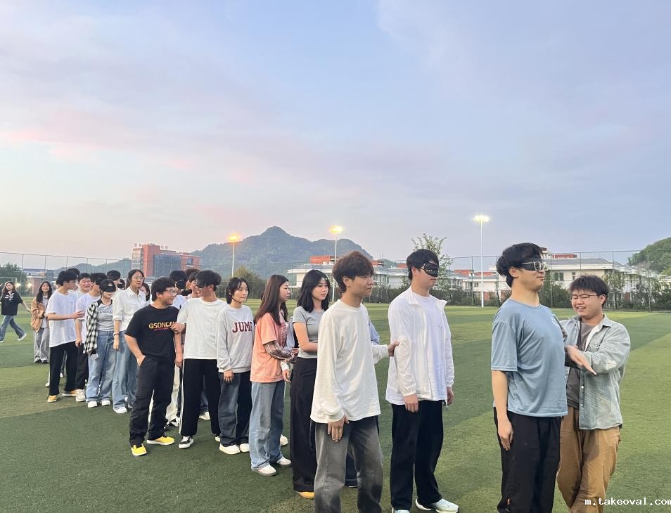 第二场“注入‘心’能量”拓展活动在风雨操场展开。“盲行信任之旅”考验同伴间默契,“彩虹接球”强化团队协作能力。特别设置的焦虑清单与认知重构工作坊,帮助学生系统梳理实习压力源,通过分享成功经历重塑积极认知,提升心理韧性。