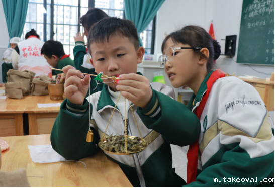 “我们今天认识了艾叶、川芎、侧柏叶几种中药,亲手做了中药足浴包,我要带回家去给我妈妈泡脚驱寒,预防感冒 ”三年级5班曹宇洲同学在活动结束后说道。