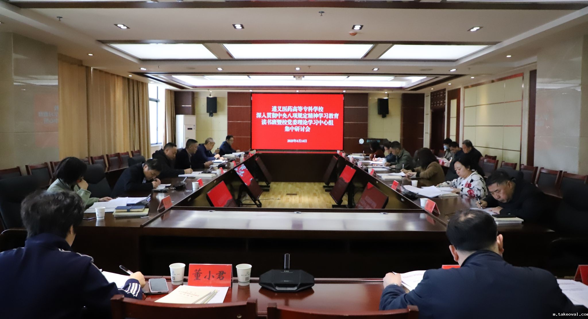 4月14日,学校深入贯彻中央八项规定精神学习教育读书班暨理论学习中心组集中研讨会在综合楼举行,会议围绕全面深入学习贯彻习近平总书记在贵州考察时的重要讲话精神和关于加强党的作风建设的重要论述,锲而不舍贯彻落实中央八项规定精神,持续深化党的作风建设,切实以优良党风引领学校高质量发展展开研讨。学校党委班子成员、副县级领导干部参加会议,会议由校党委书记俞松主持。